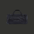 Stor bag med hjul i slitesterk polyester på utsiden, og forsterket PU - behandlet innside. Håndtak i hardplast og myke bæreremmer.