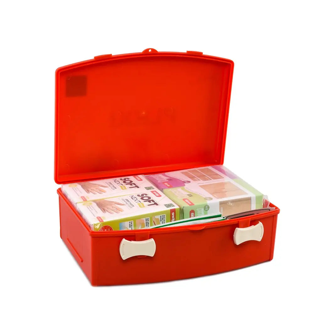 Kofferten er robust og inneholdet dekker minimumskravet til førstehjelpsutstyr på mindre arbeidsplasser.