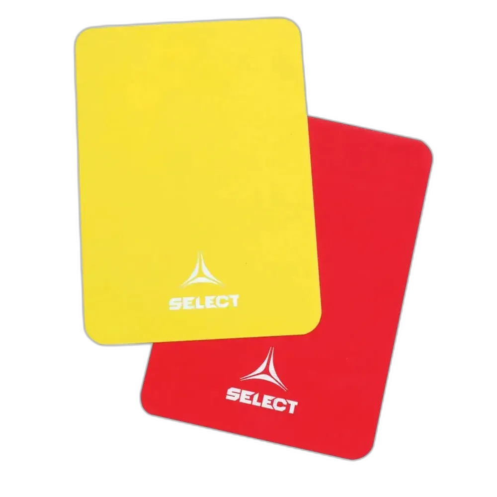Dommerkort fra Select - rødt og gult kort. Dommerkortene er vannfast og laget av kunststoff.